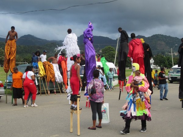 Vers 16h, le défilé commence. Les costumes et les jeux d’acteurs des trinis sont incroyables. Échassiers, indiens, bretteurs, camion musique, semi-remorque orchestre, plumes et tutus… c’est magnifique.